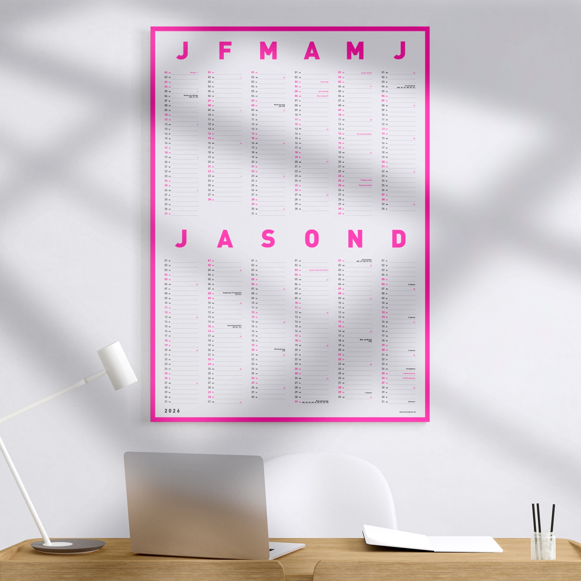 Planungsheld: Wandkalender 2026 in Pink – im Hoch- und Querformat